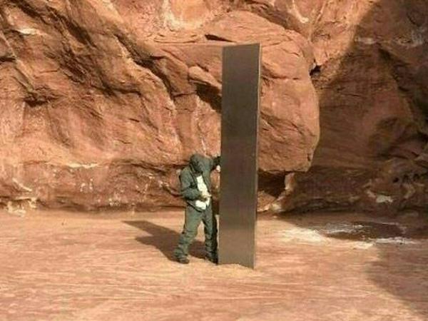 Eigentlich wollten die Mitarbeiter der Behörde für öffentliche Sicherheit in Utah Schafe zählen. Wilde Dickhornschafe, die in den Wüstenregionen des Bundesstaates leben. Was sie mit ihrem Hubschrauber dann fanden, wirkt eher wie aus einem Science-Fiction-Roman: ein einsamer Metall-Monolith - dreieckig, glänzend, fast vier Meter hoch - mitten in abgelegenem und schwer zugänglichem Gelände voller Steine und Krater, eingerahmt von roten Felsen. Die Nachricht vom Fund dieses „ungewöhnlichen Objekts“ verbreitete sich rasend schnell und löste weltweites Rätselraten aus.