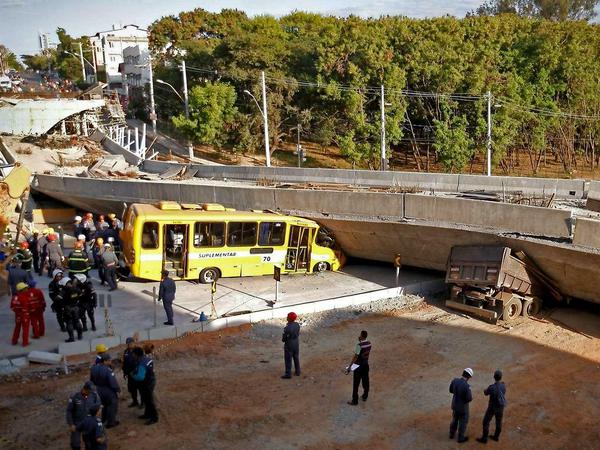 Die Brückenkonstruktion an der Avenida Pedro I war in Sekundenschnelle eingestürzt. Es hätte zu einer noch größeren Tragödie kommen können: Vom Omnibus wurde nur der vordere Teil des Fahrzeuges völlig eingequetscht. Die Passagiere im hinteren Teil des Busses konnten das Fahrzeug verlassen. Einige erlitten Verletzungen.