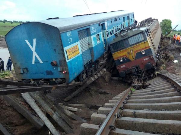 300 Menschen hätten gerettet werden können. Auf Bildern des Nachrichtensenders NDTV war zu sehen, dass Teile eines Zuges vom mehrere Meter hohen Bahndamm rutschten und im Flussbett auf der Seite liegenblieben. Mehrere Passagiere seien zunächst noch in den teils im Wasser liegenden Waggons eingeschlossen gewesen, sagte der Bahnsprecher weiter. Einer der Züge kam aus der Metropole Mumbai und war auf dem Weg in die Tempelstadt Varanasi. Der andere war in die umgekehrte Richtung unterwegs.