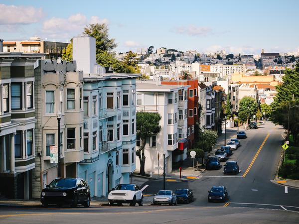 Wir folgen der 18th Street, die vom Dolores Park zum LGBTQ+-Bezirk Castro führt. Ihr aktuelles Buchprojekt spielt in der Hippie-Zeit, genauer gesagt: in einem pastellblauen viktorianischen Haus, das wir nach wenigen Minuten erreichen.