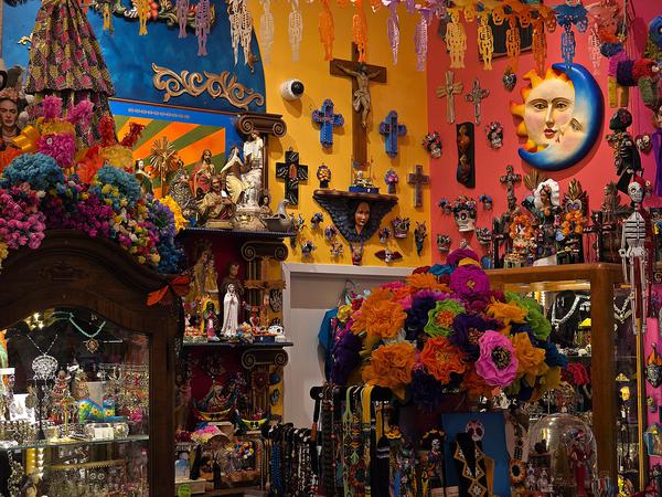 Moser deutet zum Haupteingang der Station. Filigrane Kolibris aus Metall hängen dort, eingebettet in bunte Keramikfliesen mit Blumenmotiven. Sie sind Teil des Kunstwerks „Palazzo del Colibri“ von Victor Zaballa, ihrem Ehemann. Der aus Mexiko-Stadt stammende Künstler verbindet in seinen Arbeiten indigene Symbolik mit Chicano-Kultur, arbeitet mit Materialien wie Metall, Holz und Draht. „In Mexiko gelten Kolibris als Götterboten, stehen für Zukunft und Hoffnung, aber auch für die Reisenden, die Immigranten“.