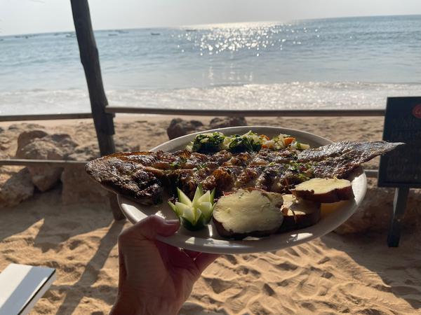 Ein Angestellter öffnet die Schranke für die Besucher. Die Lodge ist kein Luxus-Resort, eher eine Ansammlung von charmanten Buden mit einem offenen Restaurant direkt am Strand. Es gibt gegrillten Fisch, dazu ein gekühltes Getränk aus der Dose.