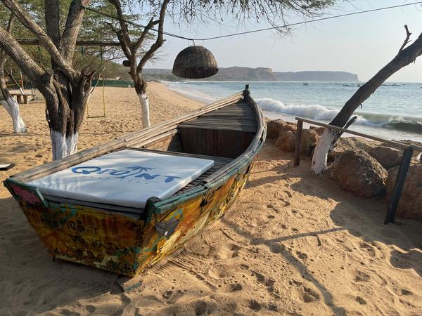 In den Sommermonaten ist wenig los, es ist zu kalt, tatsächlich, und das Meer auch recht frisch. Alles wirkt wie eine entspannte Surfer-Lodge. Der Fahrer, der das Auto den ganzen Tag über die staubigen Pisten gesteuert hat, genießt seine Cola. „Ich verdiene im Monat 250 Euro, wir sind eine vierköpfige Familie“, erzählt er. „Eine Hütte hier im Beachressort kostet 69 Euro am Tag. So etwas können wir uns nicht leisten.“