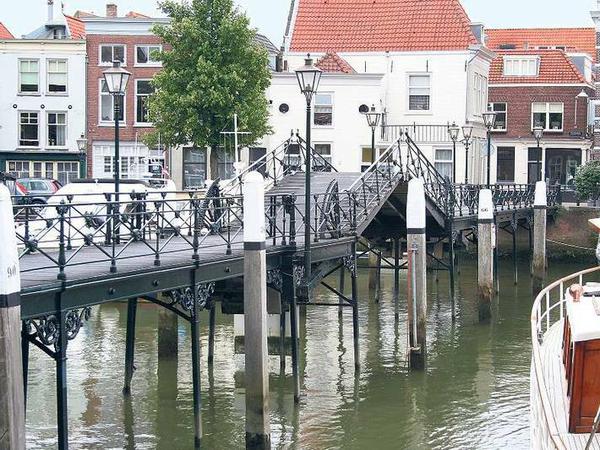 Die langen Straßen, die parallel zu den beiden gegrabenen Hauptwasserwegen verlaufen, die die Insel durchschneiden, sind auch größtenteils erhalten geblieben. Sie verbinden Binnenhäfen wie den alten Wein- und den Wollweberhafen. Grachten, wie in anderen niederländischen Städten, sucht man in Dordrecht vergeblich. Und es fällt noch etwas auf: Anders als etwa in Amsterdam stehen die Häuser meistens mit der Rückseite zum Wasser. Ein Entlangflanieren am Wasser ist also nicht überall möglich.