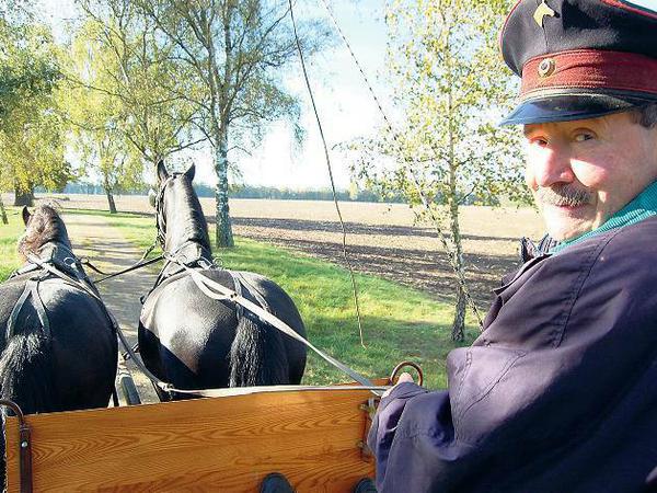 Ab und zu dreht sich Wolfgang Zoch, der Kutscher und Gestütswärter, zu uns um, schaut nach dem Rechten, beantwortet Fragen. Mit seiner handhoch aufragenden, blauroten Schirmmütze, die ein Pferdesymbol und ein Hoheitsabzeichen schmücken, mit seinem militärisch gestutzten Schnurrbart und den lustigen Augen könnte er Engelke sein, der Hausmeier, Kutscher und Kalfaktor in Theodor Fontanes „Stechlin“.