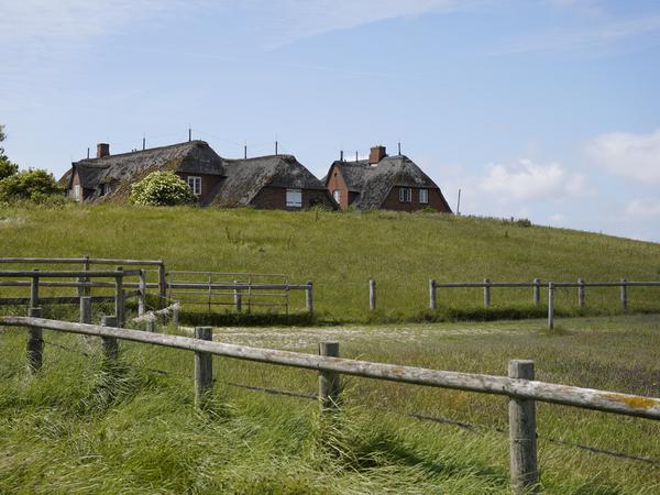 Aus dem Lego-Häufchen am Horizont ist inzwischen eine Warft geworden, so heißen die aufgeschütteten Hügel, auf denen dicht gedrängt die Häuser einer Hallig wie die von Oland stehen. Wenn im Herbst die Sturmfluten anrollen und das flache Land der Marschinseln überfluten, ragen allein die Warften aus den tosenden Wellen heraus. Das nennt man dann Landunter, und es kommt gar nicht so selten vor. In manchen Jahren zwei, in anderen 20 Mal.