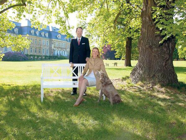 Für ein privates Dinner zu zweit gibt es die Delfter Stube, ein kleiner, mit dunklem Holz vertäfelter Raum. Die fest eingelassenen blau-weißen Motivkacheln haben Jahrhunderte überstanden. Doch zwischen den Delfter Schmucktellern sind einige Haken leer. „Wenn ich irgendwo unterwegs einen schönen Teller entdecke, sehe ich ihn schon an der Wand und kaufe ihn sofort“, sagt die Gräfin. Geld spielt hier anscheinend keine Rolle, und auf die Frage, was die Sanierung denn gekostet habe, hüllen sich die Besitzer vornehm in Schweigen.