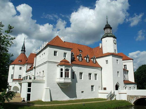 Aufgeregt läuft ein Mann, soeben vom Rad gestiegen, hin und her. „Sieht ja super aus“, ruft er, fuchtelt mit seinem Fotoapparat herum, lichtet das blendend weiße Wasserschloss aus verschiedenen Positionen ab. Von rechts, von links, stehend und hockend. „So etwas gibt es doch sonst nur in Frankreich“, schwärmt der Mann aus Düsseldorf, noch ein wenig außer Atem. Auch die Fahrt hierher, auf dem Fürst-Pückler-Radweg sei „traumhaft“ gewesen. Wälder, Wiesen, Rehe, Hasen – und kaum ein Mensch unterwegs.