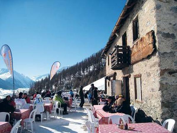 Am Talausgang kehren wir im rustikalen La Calcheira ein, essen unbekannte italo-alpine Tellergerichte wie Sciatt und Manfrigola, Fettgebäck und Crêpes mit Bittokäse gefüllt, Slinzega und Bresaola, mit Salz und Gewürzen eingeriebenes Pökelfleisch. Matteo und Lelia kabbeln sich freundschaftlich, die Geschwister sind einander offenbar gewogen, trotz der wachsenden Geschäftszweige. Wir sollten mal zum „Free Heel Fest“ kommen, sagt Matteo. Da sei dann ganz Livigno mit losen Fersen auf den Beinen. Es gibt Touren, Kurse für Anfänger, Pasta-Abende, eine 70er-Jahre-Party und im Val Fedaria eine enogastronomische Wanderung – in jedem Heustadel werden Häppchen und Schnäpschen gereicht.