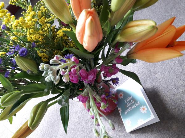Wenige Stunden nach meiner Ankunft in meiner Wohnung kann ich mir die Frage selbst beantworten. Meine beste Freundin hat Blumen geschickt. Zudem eine Karte. Ich breche in Tränen aus, bin einfach nur dankbar. Nie hätte ich für möglich gehalten, wie gut so etwas tut.