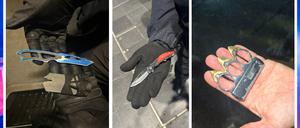 Am Wochenende dürfen Messer, Waffen und andere gefährliche Gegenstände an drei Bahnhöfen abends und nachts nicht mitgeführt werden. Die Bundespolizei kontrolliert und zeigt bereits erste Funde.