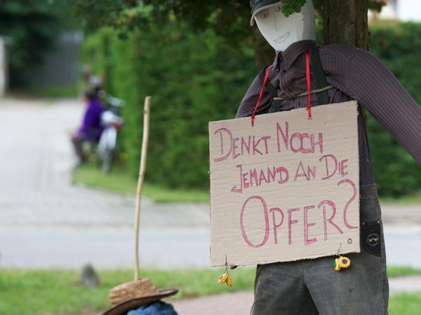 Neonazis mischten sich unter die Menge, versuchten das Grundstück zu stürmen. Später kamen Ministerpräsident Reiner Haseloff (CDU) und ein Bus mit 70 Landtagsabgeordneten. Einige von ihnen hielten als Gegendemonstration ein Banner in die Luft: „Die Würde des Menschen ist unantastbar.“