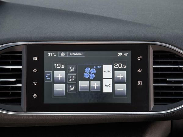 Ein Billigangebot ist der neue 308 nicht mehr. Für den in der mittleren Ausstattungsversion Active allerdings gut bestückten Franzosen (Klimaautomatik, Einparkhilfe hinten, Aluräder, Regensensor, Multifunktionsbildschirm, Tempomat) sind 18750 Euro fällig. Ein entsprechender Golf mit 85 PS ist immerhin über 2200 Euro teurer. Günstig sind viele Extras im 308. So ein Panorama-Glasdach mit elektrischer Jalousie für 450 Euro oder eine regelbare Sitzheizung für die Vordersitze für 290 Euro. Merkwürdig ist allerdings die Modellpolitik von Peugeot, wichtige Sicherheitsextras wie einen adaptiver Geschwindigkeitsregler, ein automatisches Gefahrenbremssystem und einen Frontkollissionswarner lediglich für die Topausstattung Allure für zusammen sehr günstige 450 Euro anzubieten. Den Basismotor gibt es nämlich nicht mit dieser Ausstattung, bei der übrigens LED-Hauptscheinwerfer serienmäßig sind – ein Novum in der Kompaktklasse.