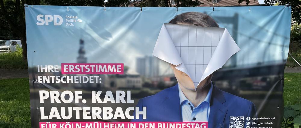 Der Schnitt durch das Gesicht von Karl Lauterbach ist immer der gleiche, einmal waagrecht unter dem Haaransatz, dann senkrecht bis zum Hals runter. „Jede Nacht wird mir mit dem Teppichmesser mein Gesicht zerschnitten“, sagt der neben Jens Spahn bekannteste Gesundheitspolitiker des Landes. Eine Helferin am SPD-Stand in Köln-Holweide hat ihm gerade die neuesten Zerstörungen berichtet.