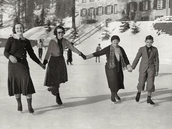 Eislaufen, das glaubt heute keiner mehr, war lange die Sportart der Maximalisten, der größtmögliche Spaß vor allem für die Engländer, die den Wintersport in den Bergen quasi erfunden haben. Der erste Hype galt nämlich nicht dem Schnee, sondern dem Eis. Er wurde nur deshalb in die entlegenen Täler importiert, weil ein englischer Arzt eines Tages damit begann, seinen Patienten das Eislaufen beizubringen. Die ersten Gäste in den Bergen waren ja keine Touristen, sondern Tuberkulosekranke. 1902 gründete sich in St. Moritz ein internationaler Schlittschuhclub, dessen Mitglieder die Urlauber waren. Die großen Hotels im kleinen Ort besaßen ihre eigenen Eisbahnen, auf der Höhe der Begeisterung gab es 18 davon. Man schaffte Orchester, Tische, Stühle und Geschirrsammelstellen hinaus aufs Eis, einen kompletten winterlichen Biergarten und ein Klavier. Tribünen wurden aufgebaut, für Shows und Revuen, Tischdecken ausgebreitet, und wie durch ein Wunder müssen es die Kellner auf ihren Schlittschuhen geschafft haben, mit ihren Tellern und Gläsern vor den Tischen der Gäste zum Stehen zu kommen.
