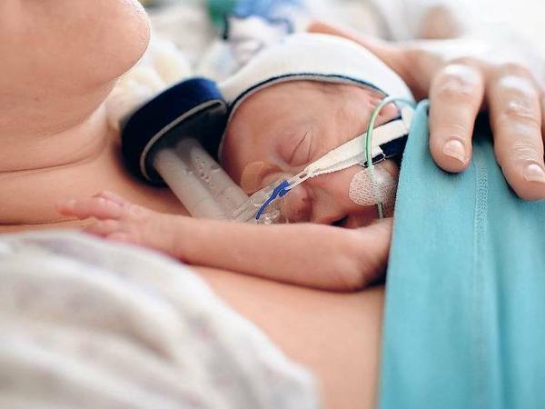 Beim „Känguruhen“ liegen Frühchen auf dem Bauch der Eltern. Dadurch entwickeln sie sich besser und sind gesünder Ärzte sind sich aber uneins, wie viele Stunden am Tag die Babys außerhalb des Inkubators verbringen sollten.