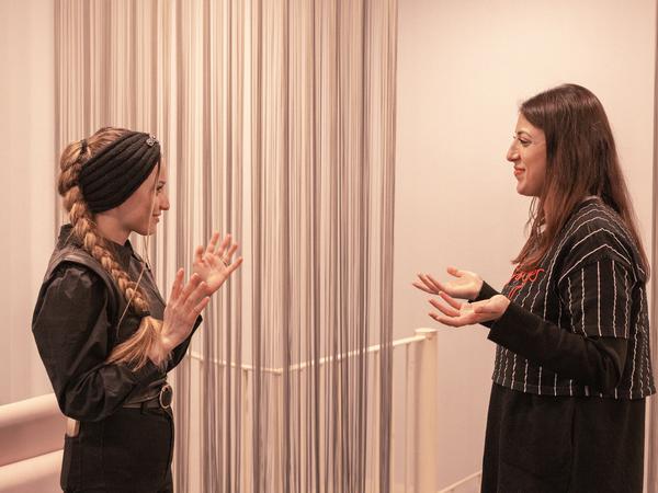 Somaia trägt kein Cochlea-Implantat und verständigt sich mit Zeinab in deutscher Gebärdensprache und mit den Kund:innen über Gesten oder mit Hilfe von Zetteln, mit denen sie nach Getränkewünschen fragt. „Es ist erstaunlich, wie gut die nonverbale Kommunikation funktioniert“, sagt Franzi Krahl. „Gestern habe ich Somaia beigebracht, wie man Flechten legt, und das ging ganz ohne Worte.“