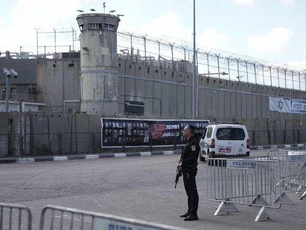 Ein israelischer Polizist steht vor dem israelischen Militärgefängnis Ofer, von wo aus palästinensische Gefangene freigelassen werden. Auch aus dem Gefängnis Ketziot kommen palästinensische Gefangene frei.
