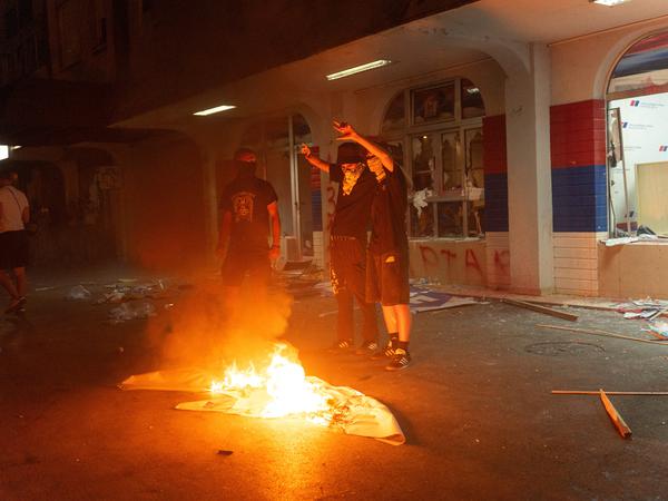 Serbische Medien sprechen von „bürgerkriegsähnlichen Zuständen“ in mehreren Städten am Donnerstagabend. In der zweitgrößten Stadt Novi Sad im Norden des Landes zerschlugen Menschen die Scheiben des Sitzes der Präsidentenpartei SNS, drangen in das Gebäude ein und entfernten Gegenstände, wie serbische Medien berichteten. In der Hauptstadt Belgrad bewarfen SNS-Anhänger die Regierungsgegner mit Feuerwerkskörpern.