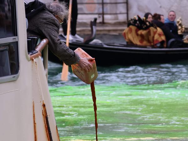 In Venedig kippten Aktivisten von „Extinction Rebellion“ grüne Farbe in den Kanal. Behörden und Umweltschützern zufolge soll sie nicht umweltschädlich sein. Doch der Gouverneur sieht das anders.
