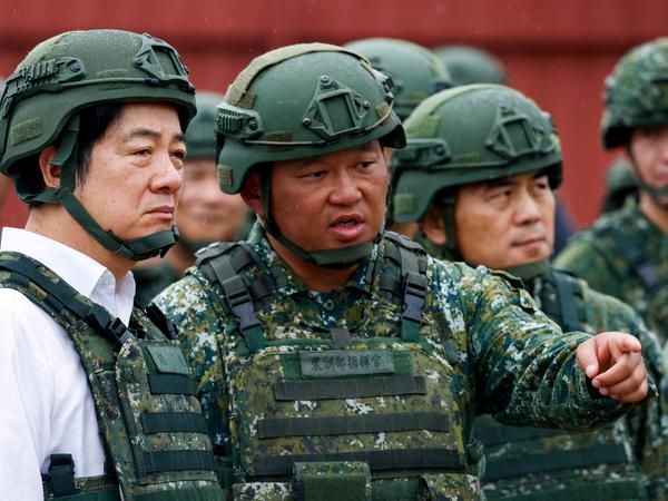 Zeigt sich abwehrbereit: Taiwans Präsident Lai Ching-te (l.) bei einem Militärmanöver.