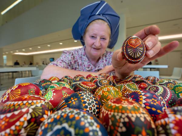 Wenn jemand die Kunst des Ostereier-Verzierens bis zur Perfektion getrieben hat, dann sind es Sorbinnen und Sorben. Die slawische Minderheit, deren Angehörige vor allem in der Lausitz zu Hause sind, geben sich nicht mit einfarbig bemalten Eiern, mit kleinen Zeichnungen oder aufgeklebten Stickern zufrieden.