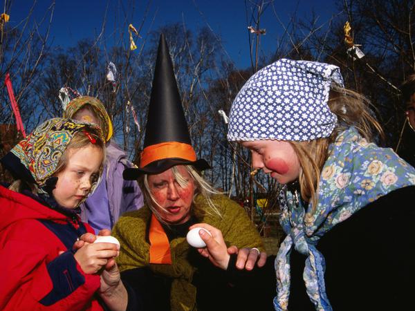 In Schweden gilt Ostern: Aufpassen von der påskkärring – der Osterhexe. Kinder mit Kopftuch und Schürze, knallrote Wangen und Sommersprossen, die gemeinsam von Haus zu Haus ziehen und um Süßigkeiten betteln, sich dafür oft mit einem selbst gemalten Bild bedanken. Für Außenstehende wirkt das meist wie eine Art Halloween im Frühjahr.