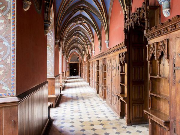 Durch Rapsfelder, Weiden und Äcker fährt man südlich von Hannover in einen Wald und steht plötzlich vor einem Traumschloss: Runde Ecktürme, zinnenbewehrte Mauern, ein mächtiger viereckiger Bergfried. Es handelt sich um Schloss Marienburg, einst Sommerresidenz der Welfen, und ist der gebaute Traum von Königin Marie. Neogotik pur, völlig aus der Zeit gefallen und doch faszinierend. Dass die ARD hier gerne Märchenfilme dreht, ist kein Wunder. Einst schenkte Georg V. (1819-1878) seiner geliebten Königin Marie (1818-1907) – die beiden hatten wirklich aus Liebe und nicht aus strategischer Vernunft geheiratet – den Marienberg am Leineufer als Bauplatz für eine Sommerresidenz. Was für ein Luxus: Marie durfte sich aussuchen, wie ihr Schloss künftig aussehen sollte. Zu den Vorbildern zählten Schloss Stolzenfels am Rhein und Schloss Babelsberg. Auch der Wald um das Schloss wurde extra als Märchenwald rund um den Marienberg, wie er nun hieß, angelegt. Man baute sogar extra einen Bahnhof, um das Baumaterial zum Burgberg zu befördern.