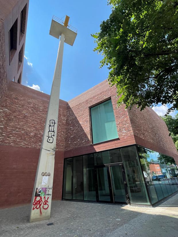 Es füllt die jahrzehntelange Brache der Einflugschneise zum Flughafen Tempelhof aus, als habe der Lichtmast an der Straße, der als Denkmal erhalten bleiben muss, immer schon dazugehört. Es wirkt weder alt noch übertrieben neu, sondern eigenständig und doch passgenau für diese eher ruppige Umgebung.