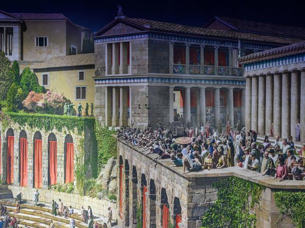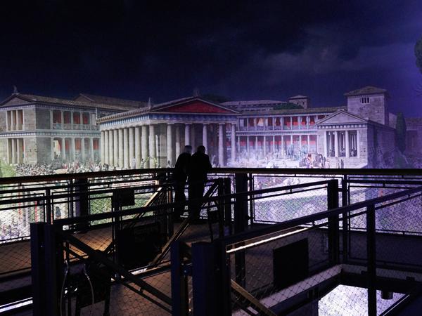 Ohne sie auskommen muss dann das 360 Grad-Panorama des Künstlers Yadegar Asisi, das die antike Metropole auch in Zeiten der jahrelangen Sanierung des weiterhin geschlossenen Museums erlebbar macht.