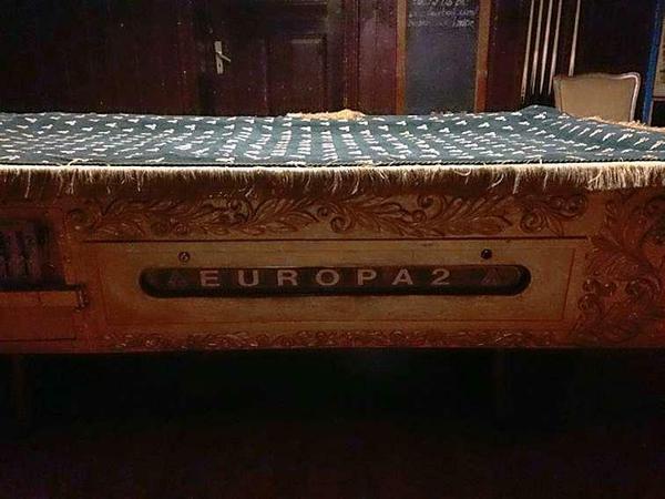 The Bechereck is a strange place. It’s dimly lit and most of it is laid out like a typical Neukölln corner bar, with one room dominated by a pool table and one by a dark counter. I don’t play pool or darts, so we sit in what they call the “living room”, where they’ve stripped the walls and put in sofas and a football table. I like it; the woman behind the bar is friendly and comes through to offer us a round of Mexikaner because she’s bored – it’s really quiet for a Friday night because everyone’s still exhausted from the Mayday holiday, she says. But I can’t get my head around the crowd – I was expecting hard-drinking old men but there are young English-speakers instead. My, how Neukölln’s changed. After a while we go and explore the room with the pool table, where the walls are decorated with collages I assume come mostly from the second-hand shops on nearby Flughafenstraße. The barwoman is playing Ike and Tina Turner and telling off a dog with a very waggy tail.
