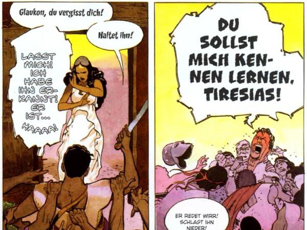 Die Frage nach dem Lustempfinden ist der Ausgangspunkt für den Comic „Tiresias“, in dessen Mittelpunkt der gleichnamige junge Krieger steht. Dieser sieht jedoch keinen Bedarf an einer geistig-philosophischen Klärung der Frage. Da er bei Männern und Frauen in gleichem Maße hoch im Kurs steht, meint er, die Frage ganz praktisch klären zu können – im Selbstversuch mit einer ihm unbekannten Frau. Dabei unterläuft ihm jedoch ein Fehler. Er vergeht sich an einer Priesterin aus dem Tempel der Athene. Die Göttin der Weisheit und des Kampfes selbst rächt dieses Verbrechen und zwingt den Krieger in den Körper einer wunderschönen Frau.