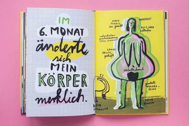 Mit viel Humor beobachtet auch Dorothea Huber in „Aus Mutters Mund“ (erschienen 2022 im Jaja-Verlag) ihren Körper und das Wachsen in ihrem Bauch und entlarvt manch grotesken Moment aus der mitunter irritierenden Welt, in der Schwangere sich des öfteren wiederfinden – sei es beim Schwangerenyoga oder wenn sie plötzlich auf hormongesteuerte Wesen ohne freien Willen reduziert werden.