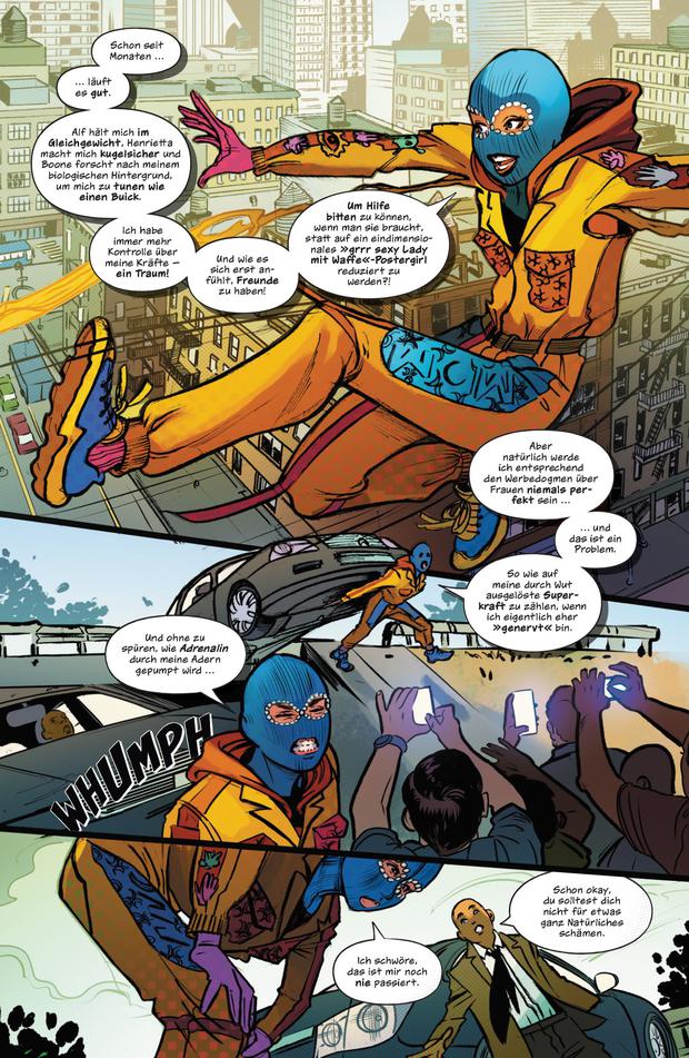 Der Comic spielt in der nahen Zukunft. Vielleicht leben wir bis dahin in einer Welt, in der es Superheldinnen nicht mehr braucht und Frauen sich nicht zerreißen müssen, sondern beides sein dürfen: Künstlerinnen und gute Mütter. Möglich wäre es.