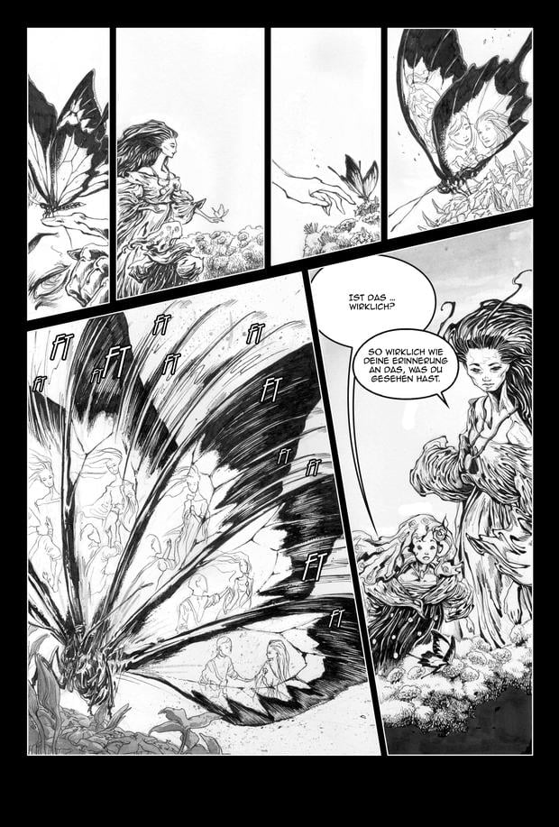 Eine einfache Lektüre ist „Alandal“ allerdings nicht. Das liegt vor allem daran, dass Niño im Gegensatz zu seinen früheren Arbeiten in vielen visuell komplexen Szenen hier nicht auf filigrane Bleistift- oder Fineliner-Zeichnungen setzt, sondern offenbar mit einem breiteren Layoutmarker gearbeitet hat.