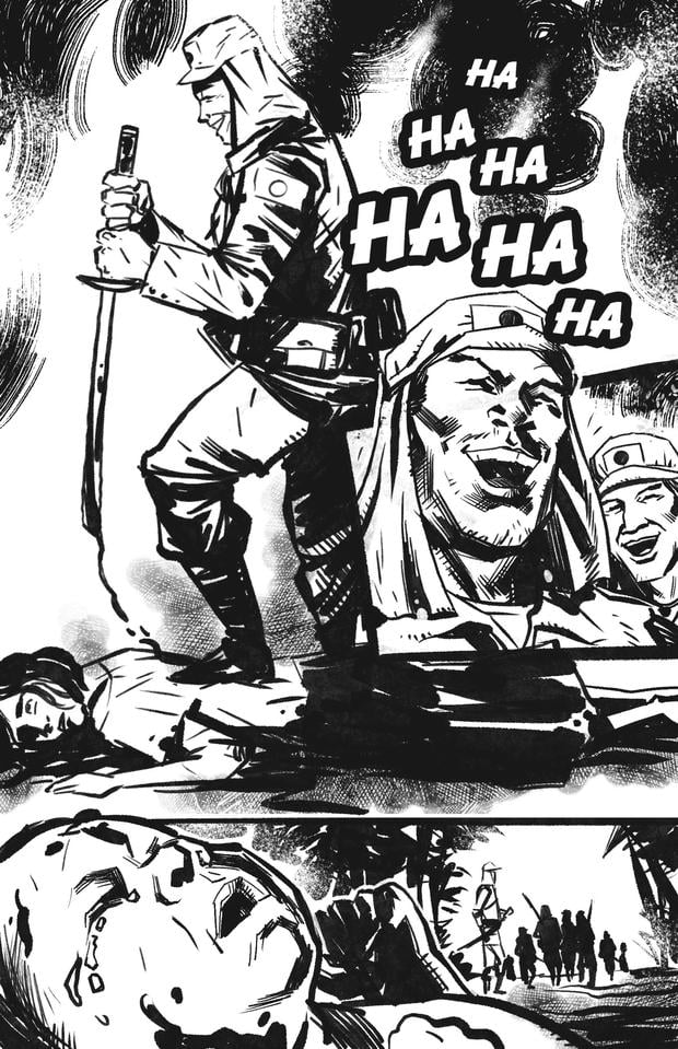 Die kontrastreichen, düsteren Bildfolgen werden ergänzt durch Bildzitate von japanischen Propagandapostern, die mit ihren warmen Farben und dem klaren Strich auch zeichnerisch einen scharfen Kontrast zu den oft alptraumhaften Szenen der Haupthandlung dieses kunstvollen Kriegshorrordramas bilden.