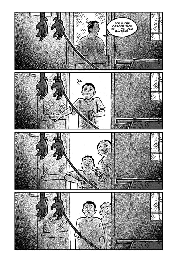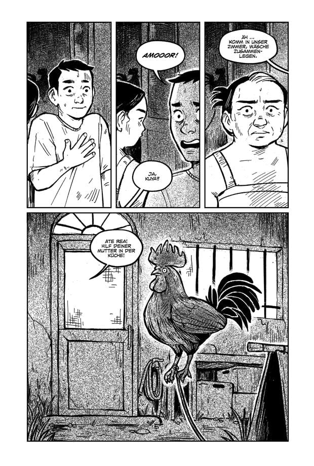 Die dem Plot zugrunde liegende Gewalt wird hier kaum je direkt gezeigt. Viel wichtiger sind Renren Galeno, die im vergangenen Jahr für einen in der „Washington Post“ publizierten Comic sogar für einen Pulitzer-Preis nominiert war, die Beziehungen der Menschen, deren Leben sich durch die Ankunft des Hahns ändert. Dabei geht es um Themen wie sozialer Aufstieg, Mobbing und das menschliche Miteinander angesichts einer mysteriösen Bedrohung. Das entwickelt Galeno mit viel Gespür für Atmosphäre, ihre handwerklich souveränen Zeichnungen kommen seitenlang ohne Dialoge aus.