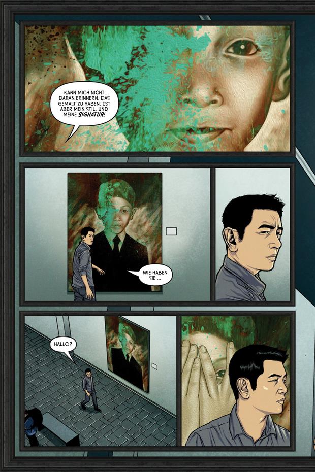 Als sich die Handlung nach und nach aus der mysteriösen Galerie in bedrohliche Parallelwelten verlagert, die Verdrängtes und unbewältigte persönliche Konflikte der Hauptfigur zutage fördert, setzt Abril auf einen freieren, experimentellen Zeichenstil. Und nach einer intelligenten Plotwendung spielen Bilder in abstrakt-minimalistischer Form eine wichtige Rolle.