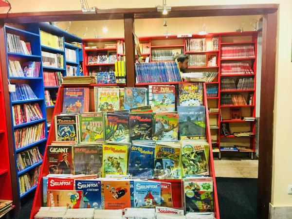Zu den Verkaufsschlagern gehört nach wie vor „Alan Ford“, dem auch das Wandbild hinter der Kasse gewidmet ist. Neben dem titelgebendenden Agenten sind da etwa der im Rollstuhl sitzende Gruppen-Chef Number One, der Snob Sir Oliver und der Erfinder Grunf zu sehen. Gemeinsam gehen sie auf geheime Missionen, bei denen ihnen ein New Yorker Blumenladen als Tarnung dient. Die kleinformatigen Hefte sind schwarz-weiß und in klassischer Panel-Aufteilung gehalten. Ähnlich - allerdings mit einem feineren Strich - ist Wild-West-Comic „Zagor“ angelegt, der in den Ländern Ex-Jugoslawiens viel erfolgreicher war als in seinem Heimatland Italien.