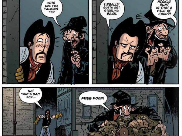 Chris Houghton, der auch schon für das „MAD Magazine“ und die Comics zu „Kung Fu Panda“ den Zeichenstift geschwungen hat, sorgt mit seinem lässigen Artwork dafür, dass die nötige Flapsigkeit nicht nur in Story und Dialogen zu finden ist. Ernste, trockene Comic-Western gab und gibt es ja genug – einen guten andersartigen und humorvollen Western lieferte in den letzten Jahren eigentlich nur „The Goon“-Schöpfer Eric Powell mit seinem Kumpel Kyle Hotz ab, die Billy the Kid mit einer Freakshow zusammensteckten und gegen die überlangen Schatten von Frankenstein und Jack the Ripper antreten ließen.