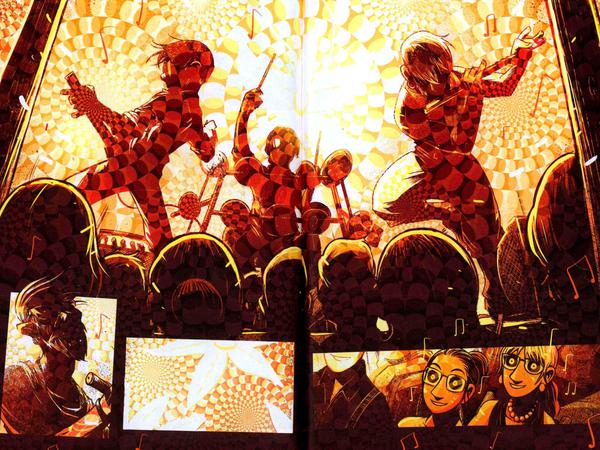 Auch in „Perkeros“ geht es um die Wirkung von Tönen. Die Finnen JP Ahonen und KP Alare loten in ihrer Erzählung die Möglichkeiten des Mediums aus und zeigen die magische Wirkung von Musik auch in den erfreuten und erschrockenen Gesichtern der Figuren, in der Aura der Konzertsäle, die sich energetisch Aufladen und zu explodieren drohen. Die körperliche und psychische Wirkung von Musik ist Thema des Comics, der zum überraschenden Finale hin immer surrealer und auch – so muss das in der skandinavischen Metal-Szene natürlich sein – mysthischer wird.
