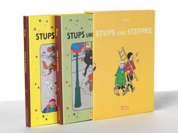 Hergé hörte 1940 auf, „Stups und Steppke“ zu zeichnen, um sich ganz „Tim und Struppi“ zu widmen. Der Carlsen-Verlag legt nun eine zweibändige Ausgabe der Farbseiten im Schuber vor, die mit 328 Comic-Seiten umfangreicher als alle bisherigen deutschen Ausgaben ist und den Eindruck einer Gesamtausgabe erweckt.