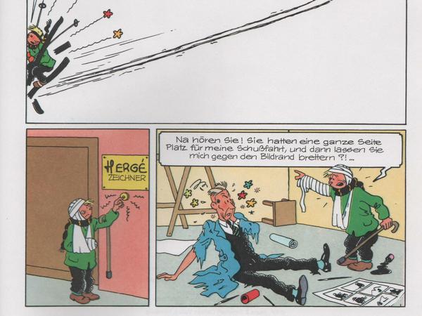 Und auch jene Strips fehlen, die heute durch ihre Metaebene besonders modern erscheinen: wenn Steppke auf Skiern einen Abhang hinunterrast, prallt er gegen den Panelrahmen. Auf der nächsten Seite beschwert er sich handfest beim Zeichner Hergé, der Steppkes Bandagen zu verantworten hat.