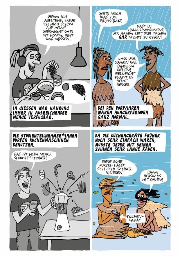 Denn: Steens Buch ist kein allzu didaktischer Auftragscomic im Pseudoschulbuch-Look und auch keine rein gefällige Anekdotensammlung fürs Kochbuchregal. Sondern ein wilder, kenntnisreicher und sehr witziger Wissenscomic, der sich ungeniert anthropologische Theorien einverleibt und sie mit Humor, feministischem Scharfsinn und einer ordentlichen Prise DIY-Ästhetik serviert.