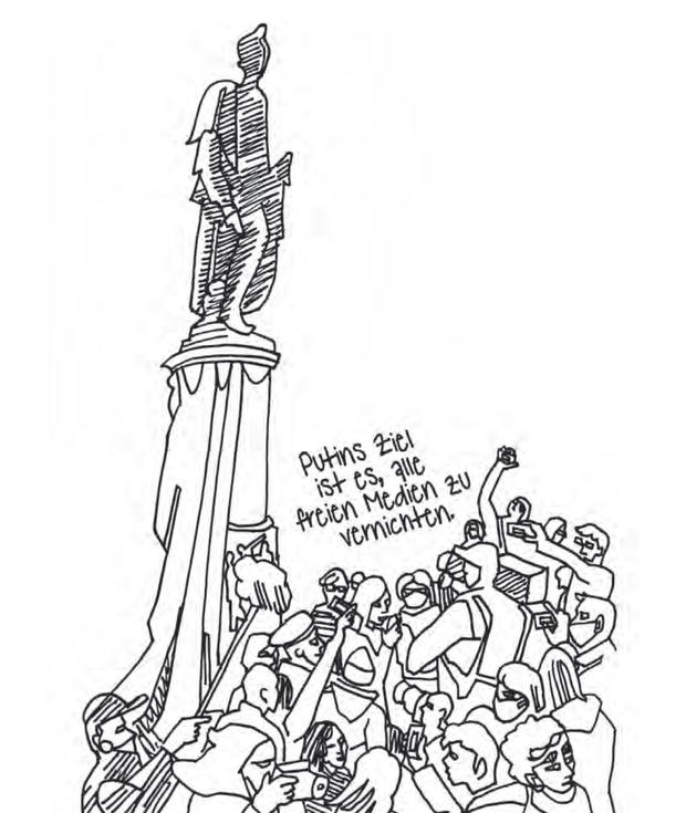 Vielleicht sind es Erlebnisse wie diese, die die inzwischen im Exil in Leipzig lebende russische Zeichnerin dazu veranlassten, ihr drittes Reportage-Buch halbironisch „Die letzte sowjetische Künstlerin“ (Übersetzt von Sandra Frimmel, Diaphanes, 288 S., 30 €) zu nennen.