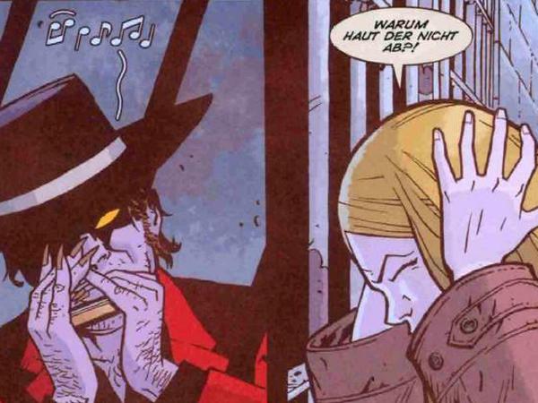Der Teufel spielt Mundharmonika. Er trägt eine coole, rot-schwarze Cowboy-Kluft, kann durch Wände gehen und sieht mit seinem breiten Hut und den fetten Koteletten ein bisschen aus wie Neil Young in seinen jungen Jahren. Das ist hübsch selbstreferentiell, denn die Graphic Novel „Greendale“, in der der diabolische Mundharmonikaspieler sein Unwesen treibt, basiert auf einer Idee Youngs und wurde von dem Musiker zusammen mit einem professionellen Comic-Team geschaffen.