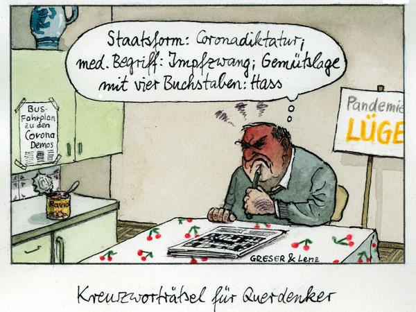 Genau 25 Jahre liegt das zurück, ein Vierteljahrhundert, in dem die zwei Karikaturisten, die ihre Werke mit Greser & Lenz signieren, die Leserinnen und Leser der FAZ sowohl zum Lachen als auch zu kontroversen Reaktionen und Diskussionen gebracht haben. Ein Arbeitsjubiläum, das nun mit rund 380 ihrer Zeichnungen in der bis zum 21. November laufenden Schau gewürdigt wird - thematisch gehängt, nicht chronologisch.