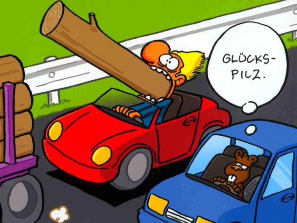 Sitzen drei Sensenmänner beim Bier zusammen. Sagt der eine: „Ich komme also rein in das Wohnzimmer und - total peinlich: Alle schon tot!“ Der eine lacht sich kaputt, der andere winkt ab, weil er den Witz schon kennt. Und der Leser fragt sich, wie jemand tickt, bei dem dieser Gag noch zu den naheliegendsten gehört. Es ist der Cartoonist Ralph Ruthe, Jahrgang 1972, der sich in „Das große Cartoonbuch“ als Meister des extrem schrägen Denkens erweist. Dabei scheinen die Sensenmänner zu seinen Spezialitäten zu gehören, die sich für vieles qualifizieren. So auch fürs Sekretariat auf der Polizeiwache, wo der Gevatter hinterm Rechner seinem Chef zuruft: „Die Unfallberichte für übernächste Woche wären dann auch fertig.“