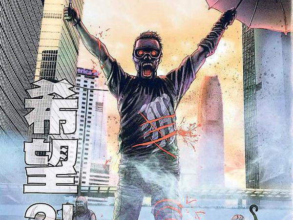 Immer wieder der Regenschirm. Er findet sich am Anfang der apokalyptischen Monstergeschichte „Hong Kong Infected“ des Zeichners Sam Tse, in der gefräßige Albtraumwesen die Sieben-Millionen-Metropole terrorisieren. Er taucht in dem Comicstrip „What a World“ auf, mit dem die Zeichnerin Au Wah Yan in der Zeitschrift „Ming Pao Weekly“ alle zwei Wochen soziale und politische Entwicklungen in der einstigen britischen Kolonie kommentiert. Und er spielt eine Rolle in der Erzählung „Travel to Hong Kong with Blur“, in der der Zeichner Kongkee einen Asien-Besuch der britischen Band als Ausgangspunkt einer surrealistischen Actiongeschichte mit politischen Untertönen wählt.