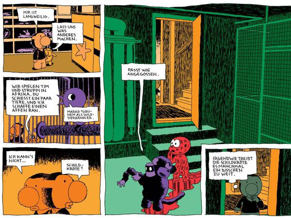 Sie scheren sich nicht darum, ob behauptet wird, Comic sei Punkrock. Comic ist nicht Punkrock. Comic ist ein leeres Blatt voller unendlicher Möglichkeiten, und die kann man nutzen oder nicht. Was kümmert den Punkzeichner das staatlich geförderte Beziehungs-Graphic-Novel? Was den Troll-Zeichner der Schabekartonkratzer? Ein Sparkassen-Comic-Zeichner hat mit Ulli Lust soviel zu tun wie der Gitarrist von Matthias Reim mit einer Jazztrompeterin.